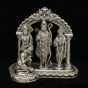 The Silver ram darbar Murti is a beautifully detailed and reverent representation of Lord Ram, Goddess Sita, Lord Lakshman, and Lord Hanuman, collectively known as Ram Darbar. Crafted from high-quality silver, this idol captures the divine family in a harmonious and graceful arrangement.