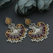 Quickshop Elegant dual-tone silver earrings featuring intricate traditional motifs. A perfect blend of... Compare