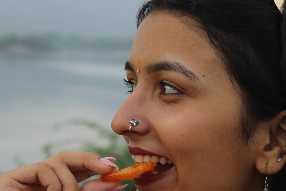 Simple, elegant, and timeless — this silver Multi colour nosepin is a minimalist beauty crafted from pure 92.5 sterling silver. Featuring a clean circular design, it offers a subtle statement that complements both traditional and modern looks. The polished finish adds a soft shine, making it ideal for everyday wear or layering with other silver pieces.