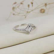 A CZ White Stone Rhombus-Shaped silver ring is a sophisticated piece of jewelry that features a cubic zirconia (CZ) stone in a striking rhombus shape, set in a high-quality sterling silver band.