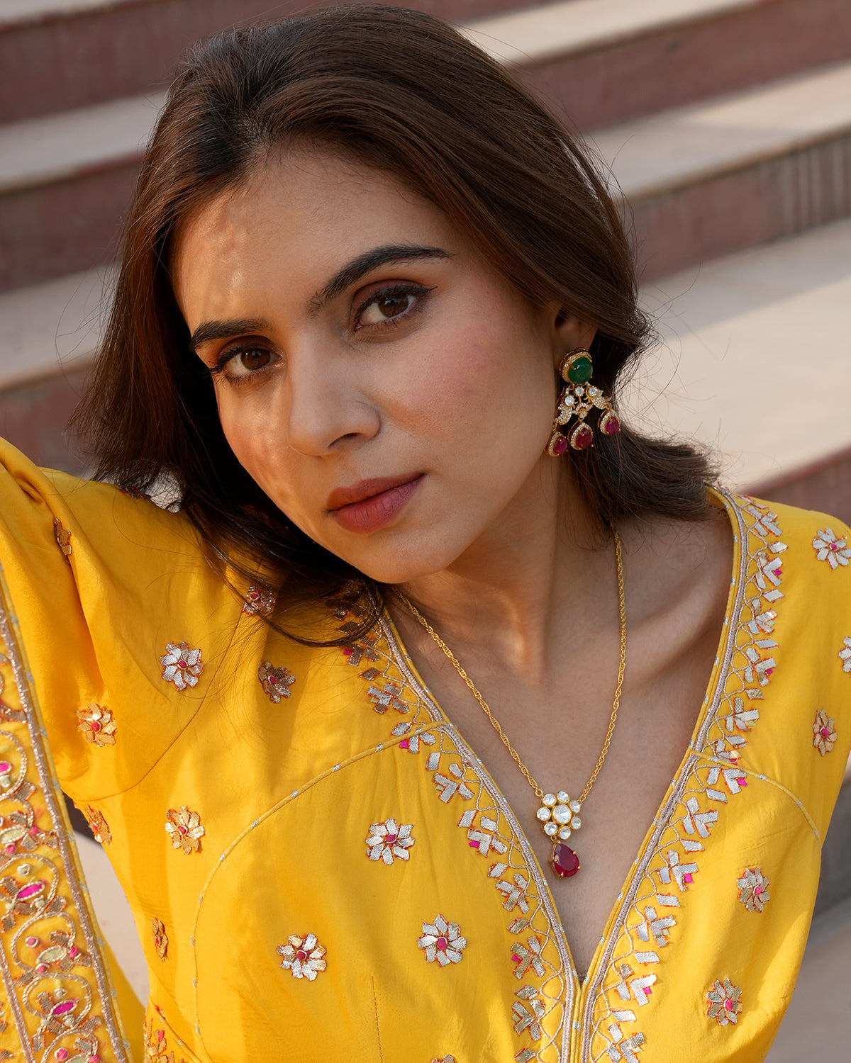 Moissanite Polki Ruby Pendant