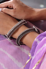 The bangle has asturdy yet comfortable feel, weighing approximately 38 grams per pair. Its moderate weight gives it a premium presence without being too heavy for daily wear. Durable and tarnish-resistant, the silver retains its shine over time with minimal maintenance.