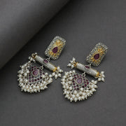 A Silver Dual Tone pink stone Earring is a stunning piece of jewelry that combines the elegance of sterling silver with the soft, feminine charm of pink stones.
