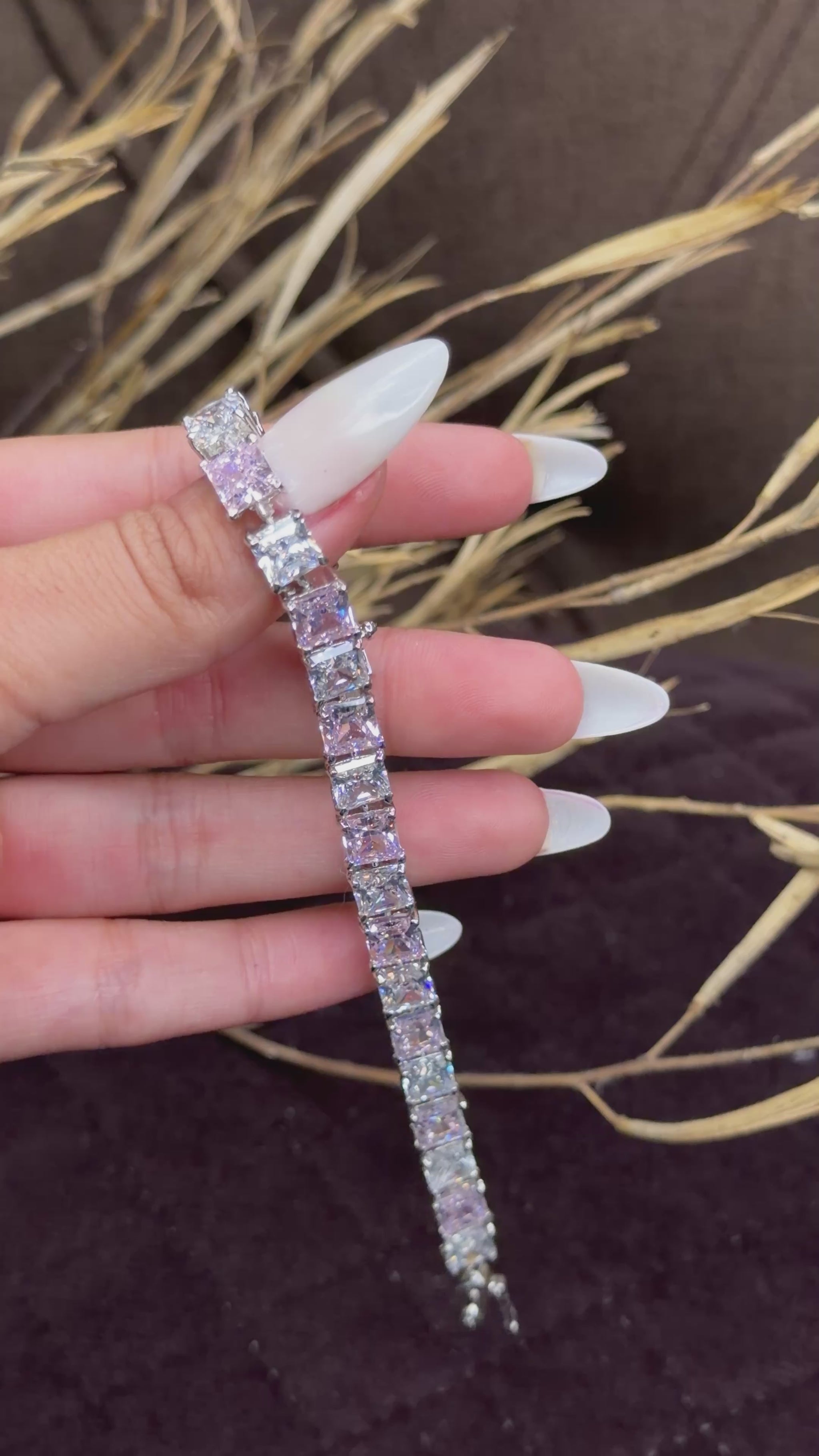 - Stone Cut: pink and clear princess cut diamond (Alternating Design)