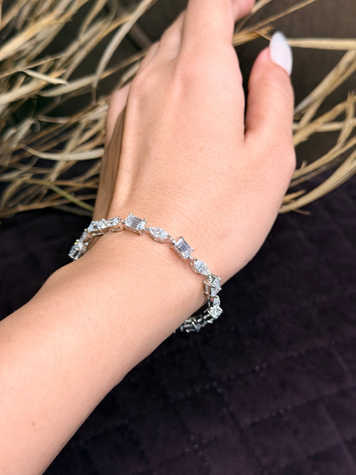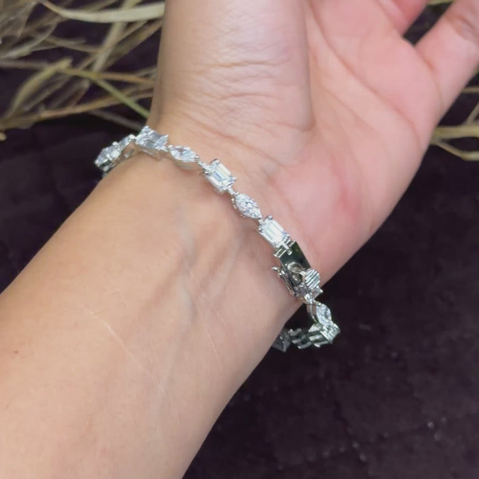 Add a touch of refined sparkle to your everyday and occasion looks with our Aurora tennis bracelet.this bracelet delivers a graceful blend of brilliance and sophistication.Crafted in 92.5 Certified Sterling Silver, it features a flawless high-polish finish that enhances the shine of each stone, making it perfect for weddings, parties, festive wear, or elegant daily styling.